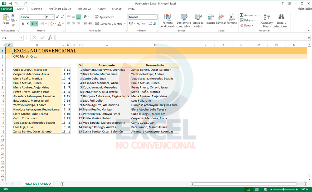 Quizás existan formas de ordenar números vía formulación y suena razonable para muchos, pero lo que no suena razonable es que una función de Excel pueda ordenar palabras, y para este ejercicio nombres.