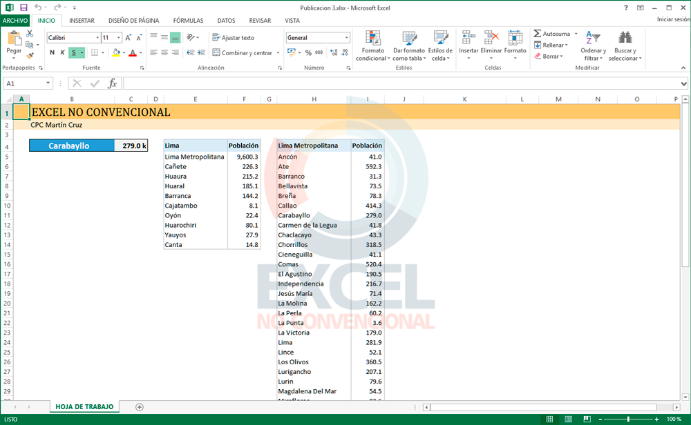 En el ejercicio tenemos dos listas, una lista corresponde a nombre de provincias incluida Lima Metropolitana y en otra lista, los distritos de Lima Metropolitana. La idea es que se pueda seleccionar una de las provincias pero si seleccionamos Lima Metropolitana, inmediatamente en la celda podamos volver a consultar un distrito específico