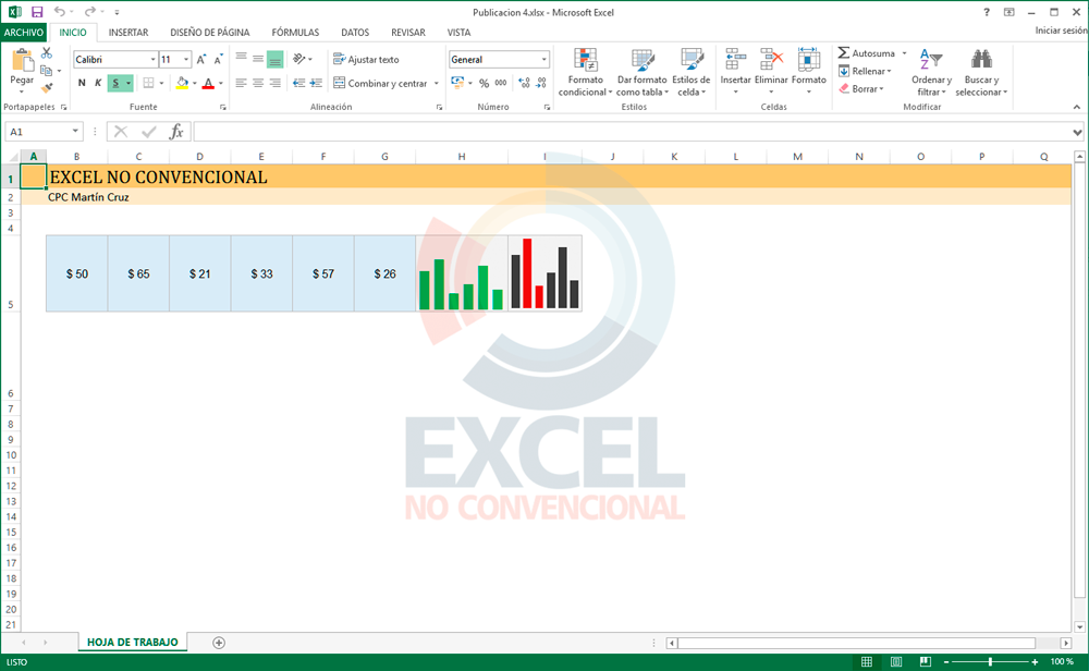 De hecho realizar un mini gráfico es una de las opciones más intuitivas que tiene Excel, pero realizarlo usando funciones de Excel es un reto bastante interesante. Usar la función REPETIR para, valga la redundancia, repetir el | (palote – Alt 124)  y luego aplicarle la fuente Playbill es en principio la primera parte. La segunda parte es lograr que la cantidad de palotes que se repitan por cada número se desarrollen en una fila, cada vez. Para lograrlo, se debe utilizar la función CARÁCTER, esta función asociada a un número, genera el carácter deseado. En ese sentido usaremos el número 10 como argumento de la función, de este modo CARACTER(10), dicho carácter hace que dentro de una celda se puedan escribir varias líneas y no todo de corrido. Eso también se puede lograr usando la combinación Alt Enter en el momento que escribir dentro de la celda. Finalmente debemos utilizar el comando Ajustar texto y la Orientación sea hacia arriba. Mira el archivo con detenimiento