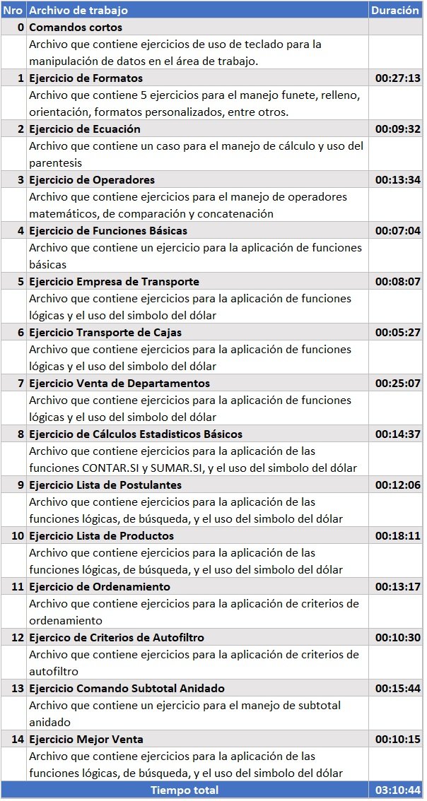 Este programa cubre 3 niveles de Excel, pasando por Excel Básico, luego por Excel Intermedio para culminar con un Excel Avanzado, en el que se cubren muchas herramientas y funciones que Excel tiene disponible para llevarlas a nuestro mundo laboral, y así, tener un manejo eficiente de nuestro trabajo.